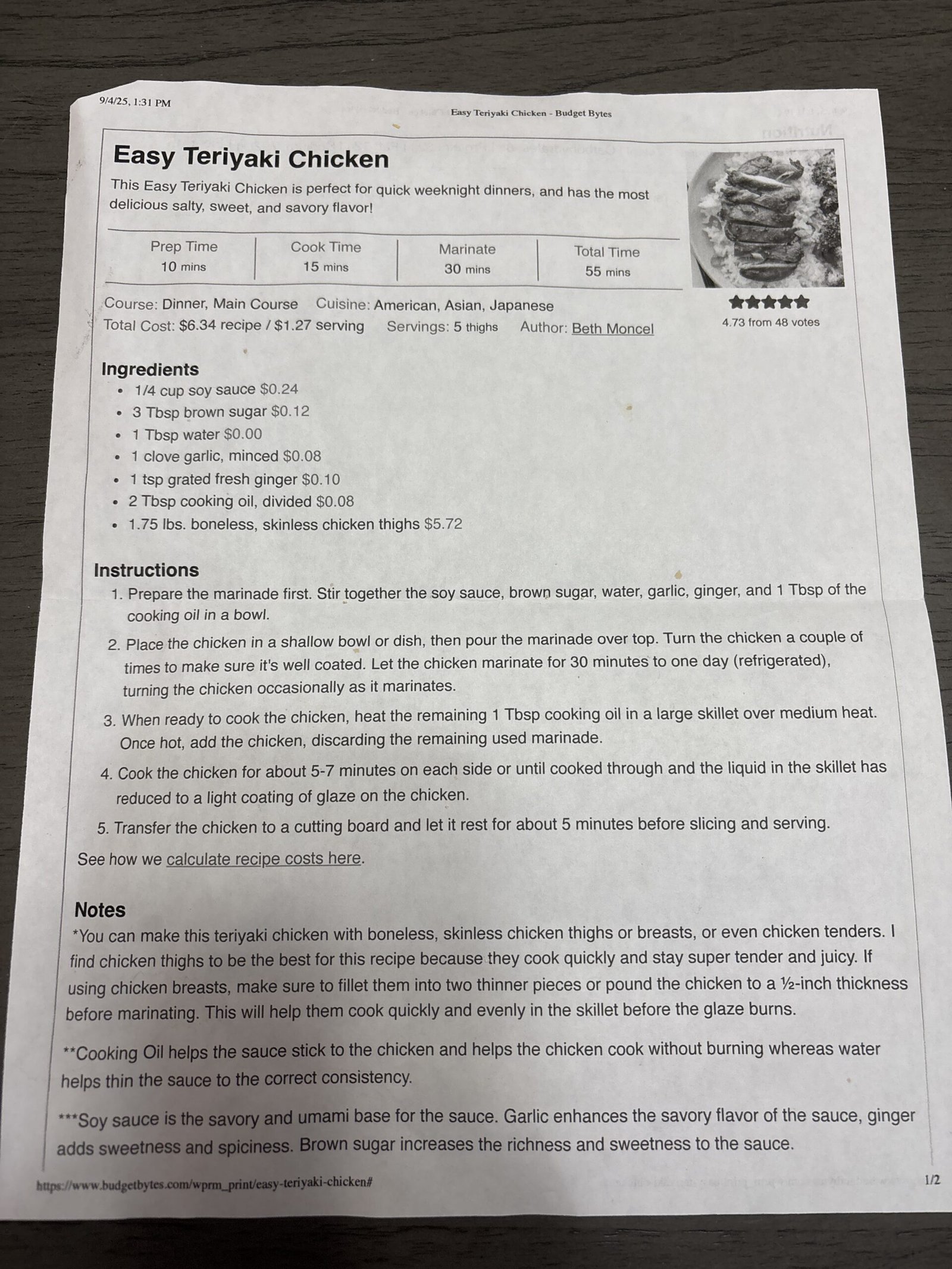 1. Prepare the marinade first. Stir together the soy sauce, brown sugar, water, garlic, ginger, and 1 Tbsp of the cooking oil in a bowl.
